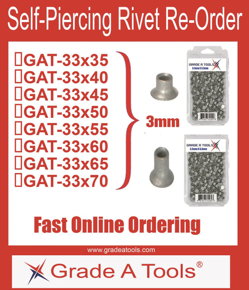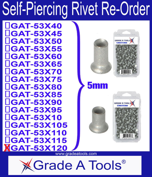 5.3mm x 12.0mm aluminum self piercing rivets provide maximum joint strength and penetration for heavy-duty automotive collision repairs, piercing through thick or multi-layer materials without pre-drilled holes to create exceptionally strong, reliable bonds. These semi-tubular rivets include a corrosion-resistant coating to prevent galvanic contamination when joining aluminum to aluminum or aluminum to steel. Each box contains 100 premium-quality rivets engineered for hydraulic or pneumatic self-piercing rivet guns. Ideal for professional body shops handling high-stack, structural, or reinforced panels on modern trucks and vehicles requiring superior shear strength and no heat distortion.